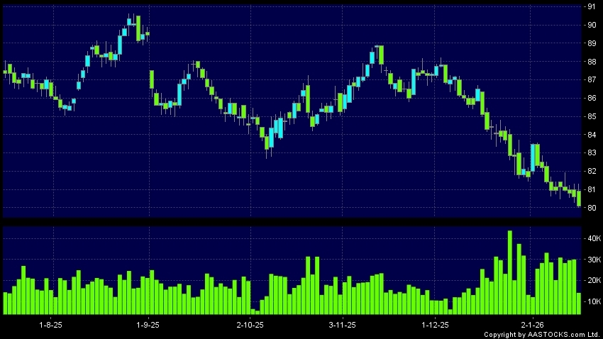 Disclaimer:The information, financial market data, quotes, charts, statistics and / or various technical analysis indicators are automatically generated based on the analyses and interpretations of publicly available information and should be used as references only at your own discretion. Such automatically generated content does not reflect the views or opinions of AASTOCKS.com Limited nor does AASTOCKS.com Limited make any guarantees to their accuracy, completeness, timeliness or correctness. You are advised to consult independent professional advice to verify pricing information or to obtain more detailed market information. Any uses of information or trades executed following the said automatically generated content are taken at your own risk for your own account.