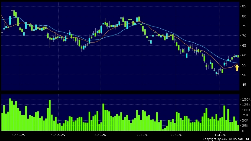 黄金交叉是一个利好讯号,指股价的短期移动平均线升穿长期移动平均线,例如50天线升穿250天线,在图表上构成交叉的形状。股价通常会上升形成一个上升趋势,技术走势向好。(港股报价延迟最少十五分钟。沽空资料截至 2026-04-17 16:25。)