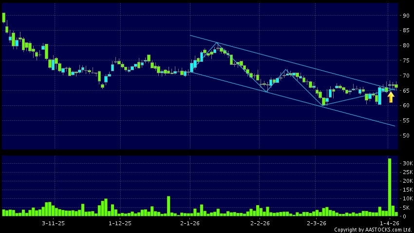 區域突破指股價在過去的一段時間只在一個範圍在內活動,然後股價上升作出突破,升穿區域的頂部,技術走勢向好。(港股報價延遲最少十五分鐘。沽空資料截至 2026-04-22 16:25。)