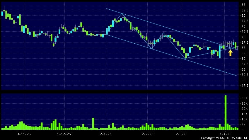 區域突破指股價在過去的一段時間只在一個範圍在內活動,然後股價上升作出突破,升穿區域的頂部,技術走勢向好。(港股報價延遲最少十五分鐘。沽空資料截至 2026-04-22 16:25。)