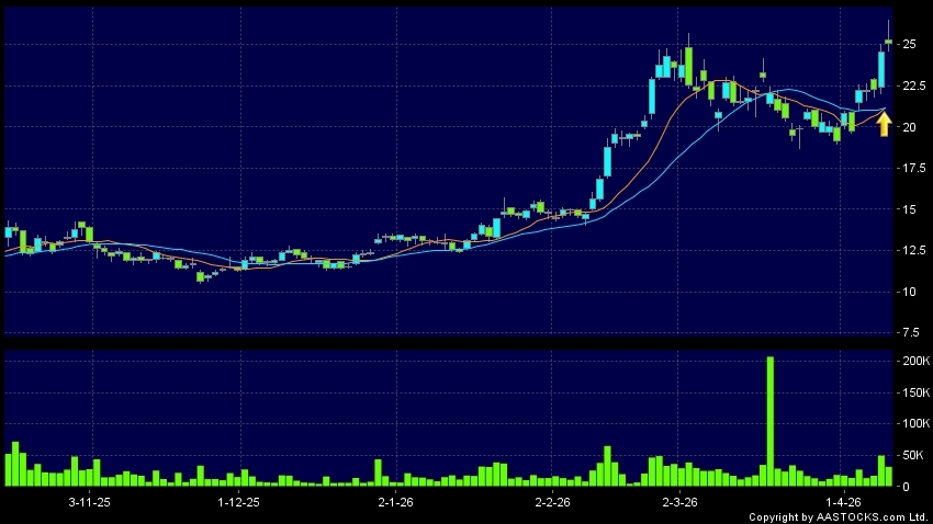 黃金交叉是一個利好訊號,指股價的短期移動平均線升穿長期移動平均線,例如50天線升穿250天線,在圖表上構成交叉的形狀。股價通常會上升形成一個上升趨勢,技術走勢向好。(港股報價延遲最少十五分鐘。沽空資料截至 2026-04-14 16:25。)