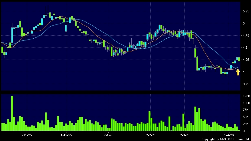 黃金交叉是一個利好訊號,指股價的短期移動平均線升穿長期移動平均線,例如50天線升穿250天線,在圖表上構成交叉的形狀。股價通常會上升形成一個上升趨勢,技術走勢向好。(港股報價延遲最少十五分鐘。沽空資料截至 2026-04-17 16:25。)